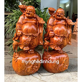 Tượng Di Lặc dâng vàng cao 60cm gỗ hương ta | Pho tượng Di Lặc để bàn đẹp