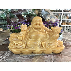 Mua tại TiktokChất liệu: Đá ngọc hoàng long Kích thước: Dài 30 cm x Rộng 13 cm x Cao 19 cm, Khối lượng: 7,7 kg Dài 35 cm x Rộng 15 cm x Cao 23 cm, Khối lượng: 12,7 kg Dài 40 cm x Rộng 14,5 cm x Cao 25 cm; Khối lượng: 19,2 kg Hình ảnh tượng Di Lặc không còn xa lạ, nhưng vẫn có nhiều người thường hay nhầm lẫn Phật Di Lặc với Thần Tài. Phật Di Lặc thường gắn liền với hình ảnh tươi cười, hiền hòa, hoan hỉ, dáng bệ vệ, bụng căng, bóng, ngực phanh, thân hình thấp tròn đầy. Với hình ảnh này, Phật Di Lặc vốn được coi là biểu trưng của sự no ấm, đủ đầy và một cuộc sống tươi vui.
