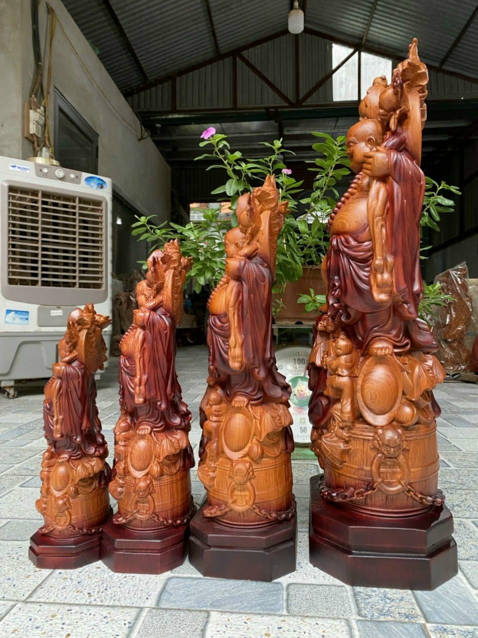 _ Tượng phật di lặc ngũ phúc được trạm khắc tỉ mỉ tinh sảo kỳ công .Đi hầu hết tất cả các chi tiết nội dung hoa văn của tượng đều được ngọt tỉa .Chỉnh sửa hoàn toàn bằng tay thủ công .Từ những người thợ dầy rặn kinh nghiệm .Cũng như tay nghề cao trong làng nghề truyền thống .Chính vì thế tượng phật di lặc đã đáp ứng đầy đủ những tiêu trí ( Đẹp bền rẻ) Thẩm mỹ nghệ thuật với chất lượng tuyệt vời