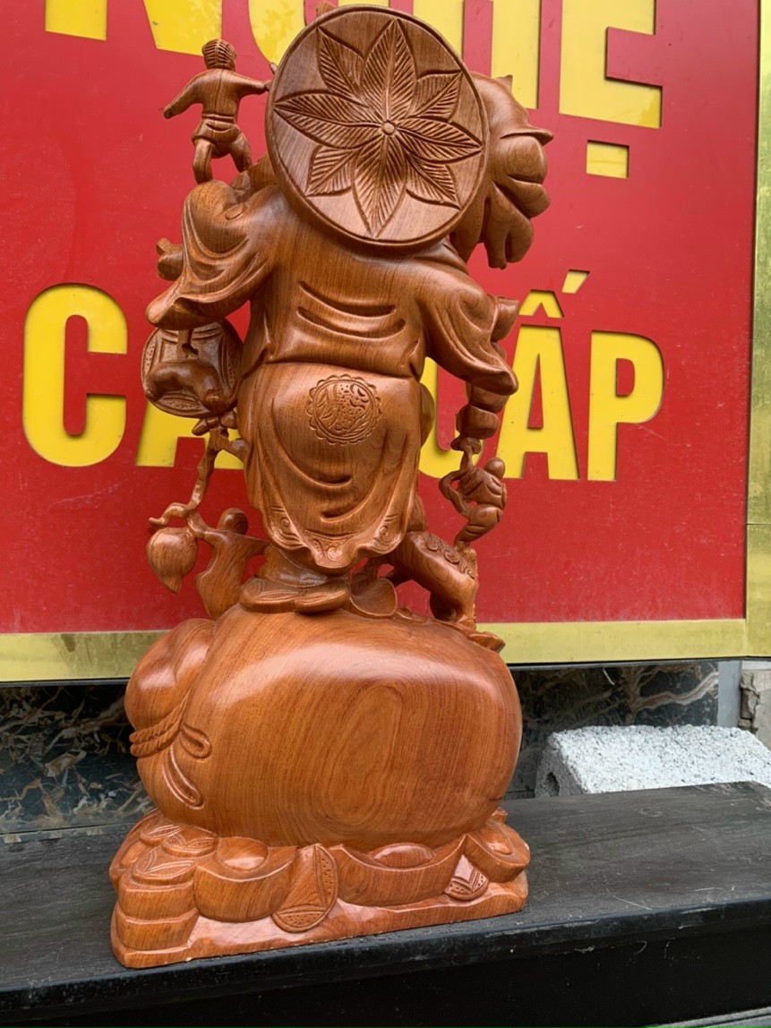 Di lạc ngũ phúc đứng vác cành đào-Tượng gỗ Trung Kiên 0944812986&0822338345