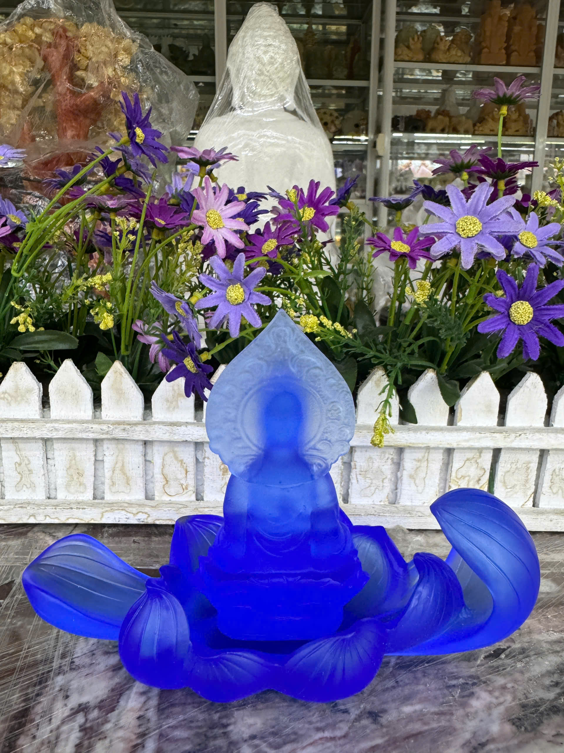 Kích thước: Cao 12 cm x Dài 8cm ( tượng phật), Dài 20 cm x Rộng 10 cm ( Đế sen ) Chất liệu: Đá lưu ly Cách sử dụng: Để Bàn Làm Việc, Phòng Khách, Trưng Bày, Bàn Học, Quà Tặng Ý Nghĩa