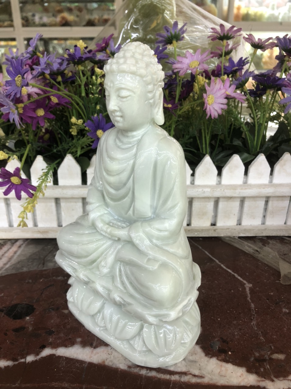✨Tượng Phật Thích Ca Mâu Ni ngồi đài sen đá trắng xanh - Cao 20 cm