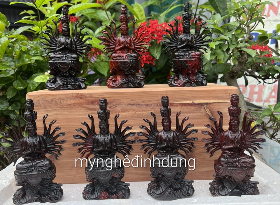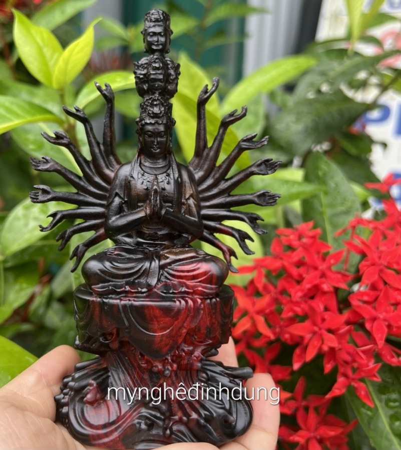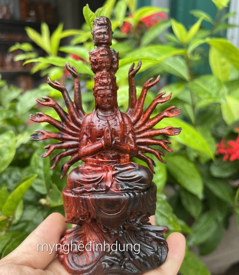 Tượng phật thiên thủ thiên nhãn được làm bằng chất liệu gỗ trắc đỏ đen tự nhiên 100% kt cao 15x11x6cm _ Tượng được chạm khắc gọt tỉa vô cùng tỉ mỉ tinh xảo kỳ công. Đi hầu hết tất mọi chi tiết góc ngách nội dung hoa văn của tượng đều được gọt tỉa chỉnh sửa sắc nét hoàn toàn bằng tay thủ công truyền thống.