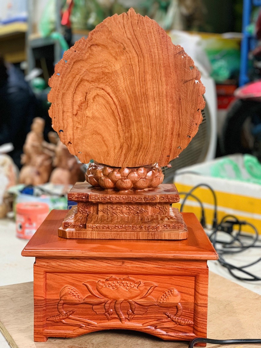 _Diện phật được làm bằng chất liệu gỗ hương đá tự nhiên 100% _ Kt tròn 20×20×6cm _ Diện phật được trạm khắc tỉa mỉ ,tinh sảo kỳ công à được lắp thêm bóng đèn