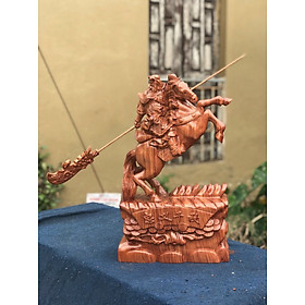 ✨Tượng quan công cưỡi ngựa bằng gỗ hương đá kt cao 40×10×20cm