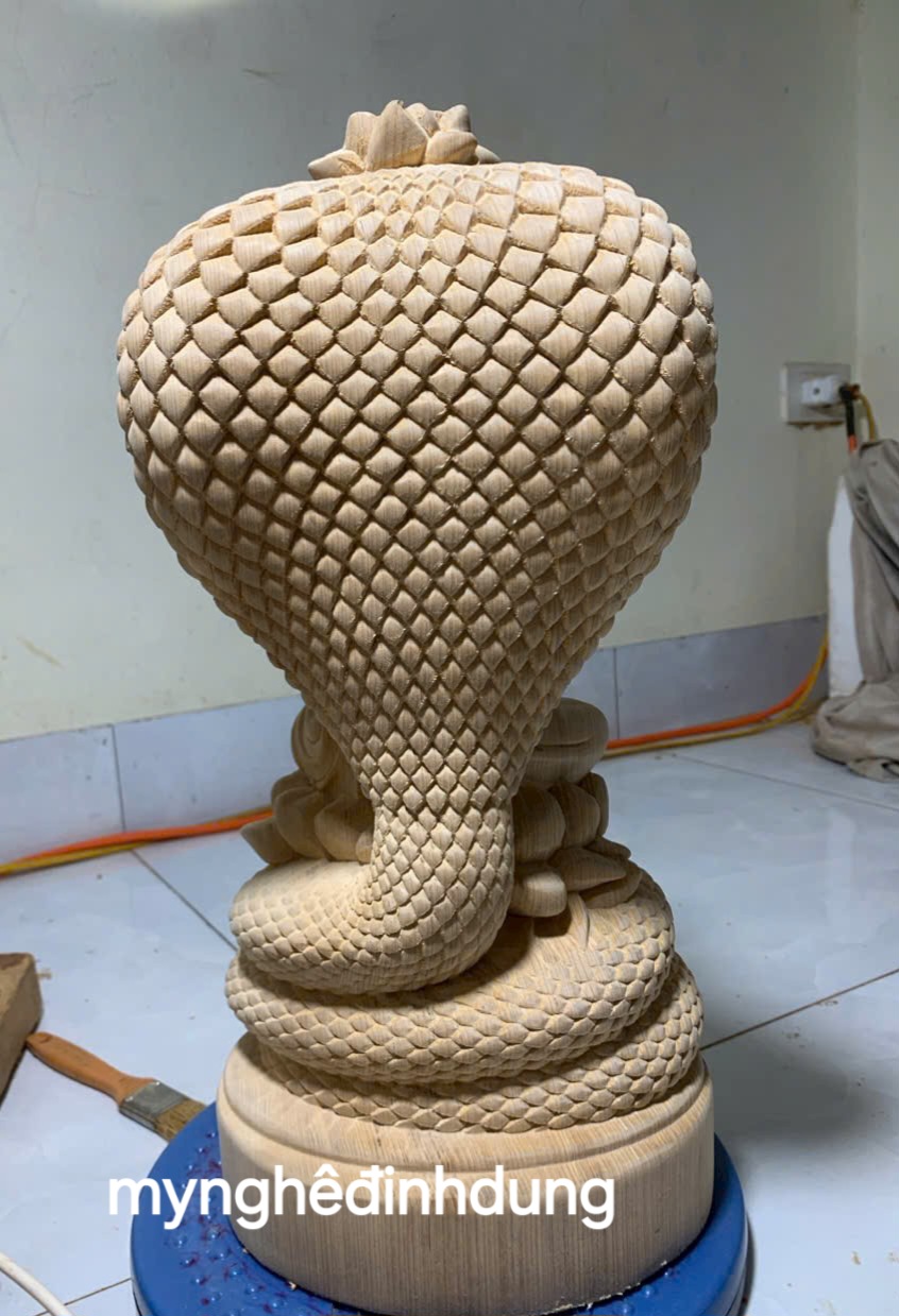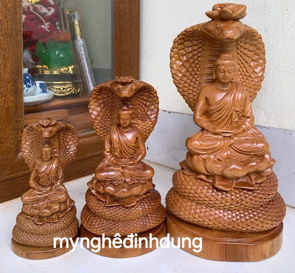 ✨Tượng thần rắn bảo vệ đức Phật bằng gỗ ngọc Am thơm nức cao 40x19x18cm