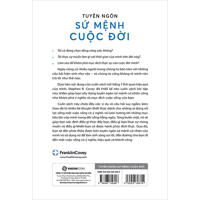 Hay quyết tâm bắt đầu cuộc hành trình ngày hôm nay – và sử dụng cuốn sách Tuyên ngôn sứ mệnh cuộc đời này như một chiếc la bàn và nguồn cảm hứng để dẫn dắt bạn trên suốt chặng đường.