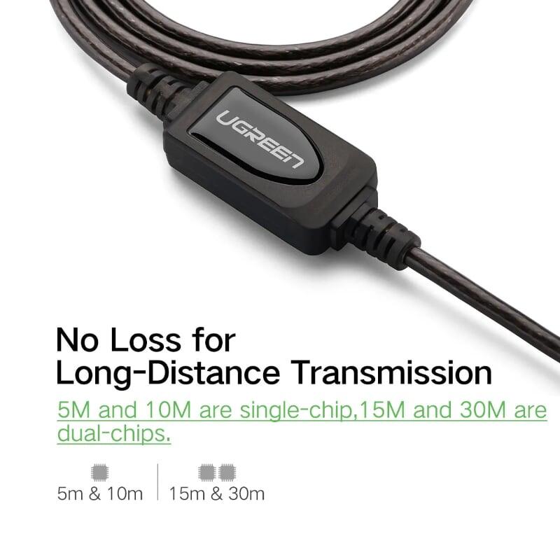 Ugreen 10326 30m usb 2.0 active extension cable with chipset đen us121