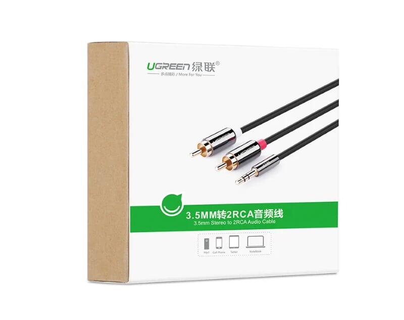 UGREEN AV102 cáp chuyển jack 3.5mm Stereo sang 2 cổng hoa sen RCA. Cáp sử dụng để kết nối điện thoại, thiết bị nghe nhạc IPod, MP3 player, máy tính bảng hoặc máy tính đến
