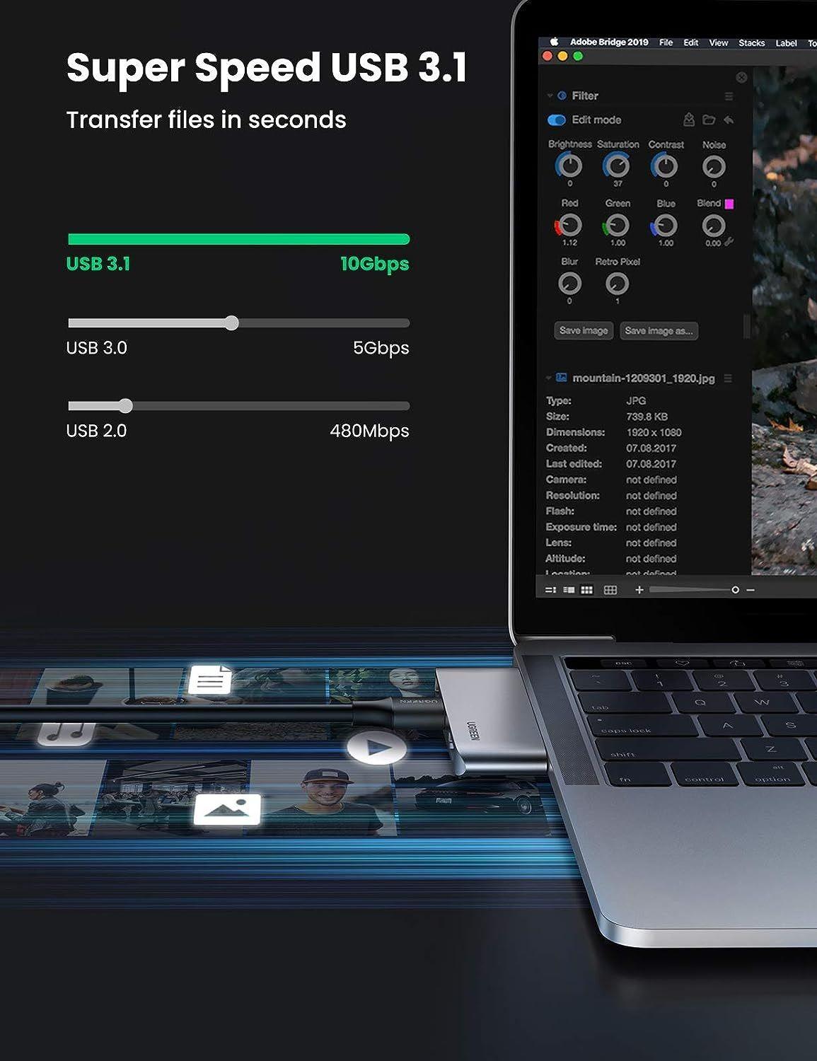 1. Hub USB C mở rộng khối lượng lớn: UGREEN USB C Hub cung cấp giải pháp đơn giản để nâng cấp PC của bạn, mở rộng Cổng 3xUSB 3.0, Gigabit Ethernet và cổng sạc