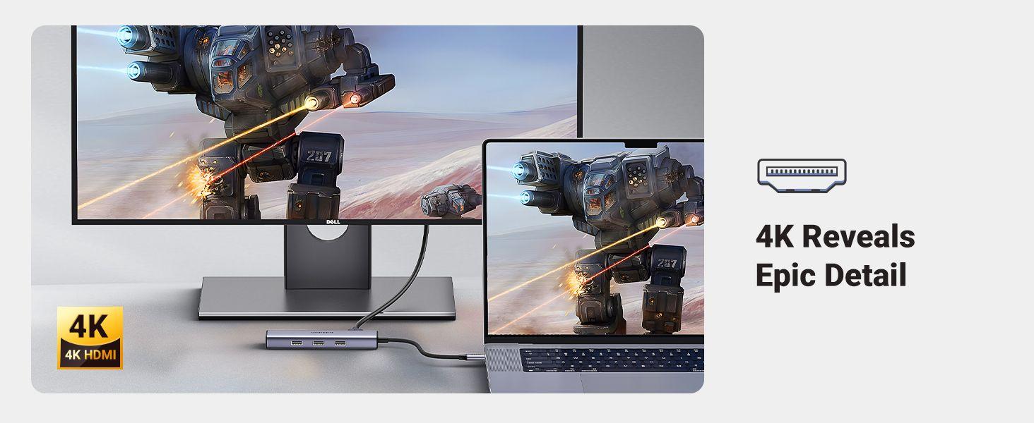 - 4K HD Visuals: Get up to 4K@30Hz with the USB C to HDMI port. Enjoy visually stunning movies, high-definition online meetings, or extend your display for incredibly appealing digital presentations. Note: Does not support HDR/3D