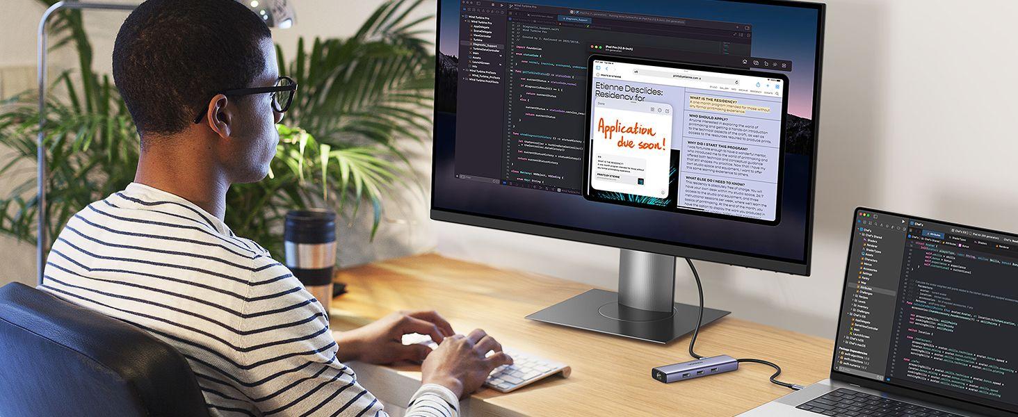 1. Hub USB C mở rộng khối lượng lớn: UGREEN USB C Hub cung cấp giải pháp đơn giản để nâng cấp PC của bạn, mở rộng Cổng 3xUSB 3.0, Gigabit Ethernet và cổng sạc
