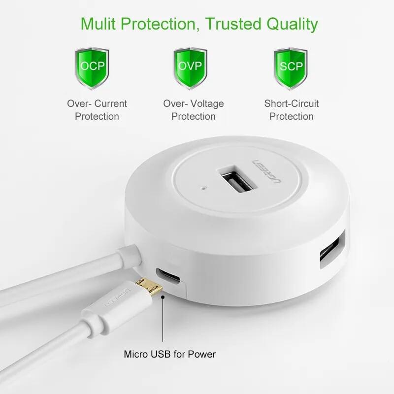 Mua tại TiktokUgreen 20270 1m 4 ports usb 2.0 hub with micro usb power port màu trắng cr106
