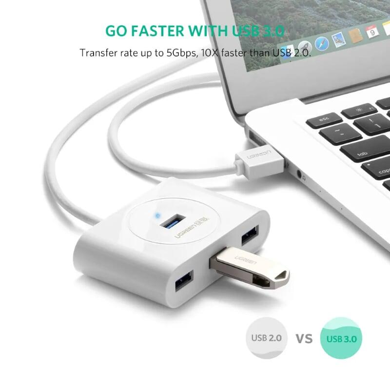 ✨Ugreen UG20282CR113TK 50CM màu Trắng Bộ chia HUB USB 3.0 sang 4 USB 3.0 hỗ trợ nguồn 5V - HÀNG CHÍNH HÃNG