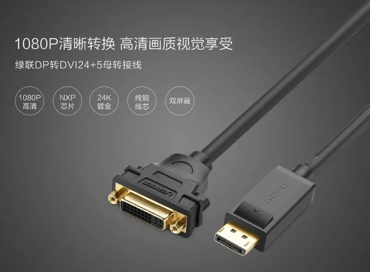 Ugreen 20405 15cm DP male to DVI female converter đầu chuyển đổi cable cáp20405 1. Length: 15cm 2. Color : Black 3. DP - DVI (24+5) 4. 70g 5. 20 x 15 x 5 cm