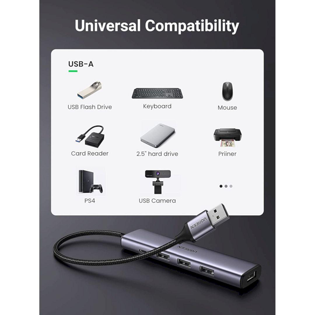 ✨Ugreen UG20805CM473TK 5Gbps vỏ nhôm Bộ chia USB 3.0 1 ra 4 cổng USB hỗ trợ nguồn Type-C - HÀNG CHÍNH HÃNG