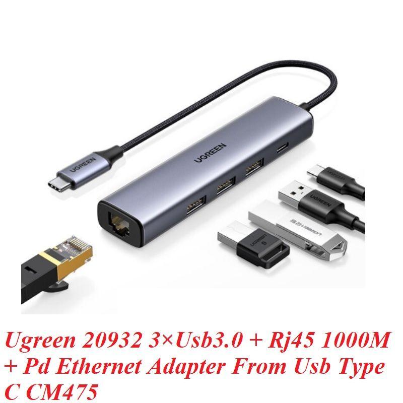 ✨Ugreen UG20932CM475TK 5 trong 1 USB type C ra Usb3.0 + Rj45 1000M gigabits Ethernet + Pd Adapter - HÀNG CHÍNH HÃNG