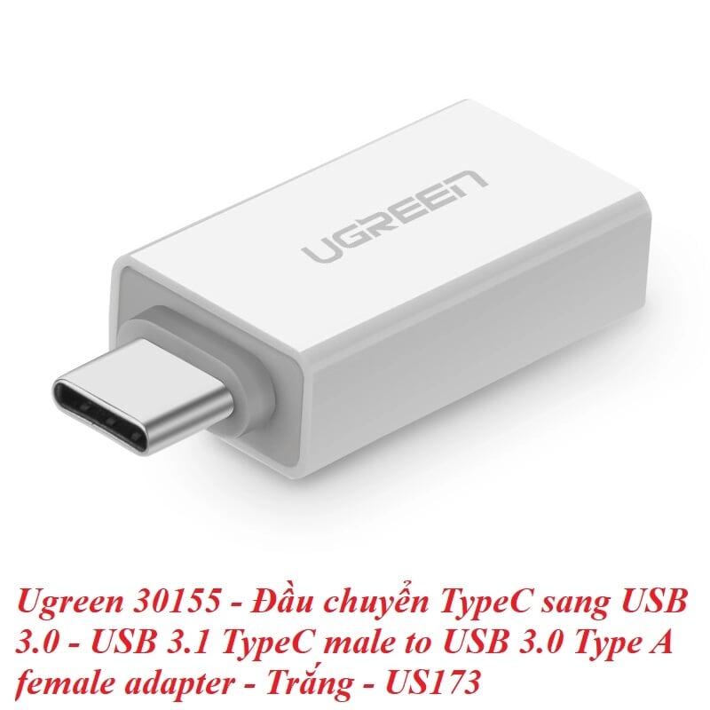 Ugreen 30155 usb 3.1 type c superspeed male to usb 3.0 type a female adapter trắng us173 1. Features: Convert USB-C to USB 3.0 - use data transfer. 2. Color: White 3. Material: ABS 4.