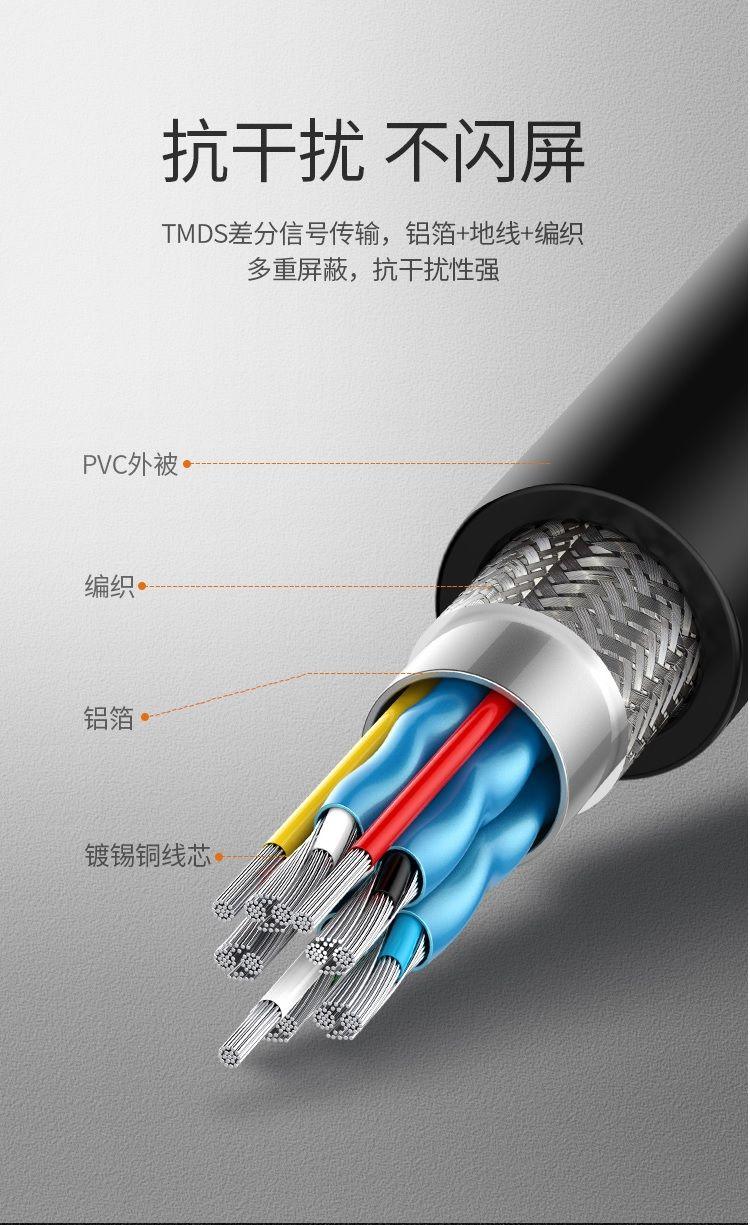 1. 1-2M: 30AWG;3M: 28AWG 2. Wire Core: tin-plated oxygen-free copper 3. Support 3D/HDR/HDCP 4. Resolution: 1080P@240Hz/2K@165Hz/4K-144Hz/8K@60Hz 5. Multiple internal shielding 6. Support mirror mode and extend mode 7. Support ATI eyefinity multi split-screen mode 8.