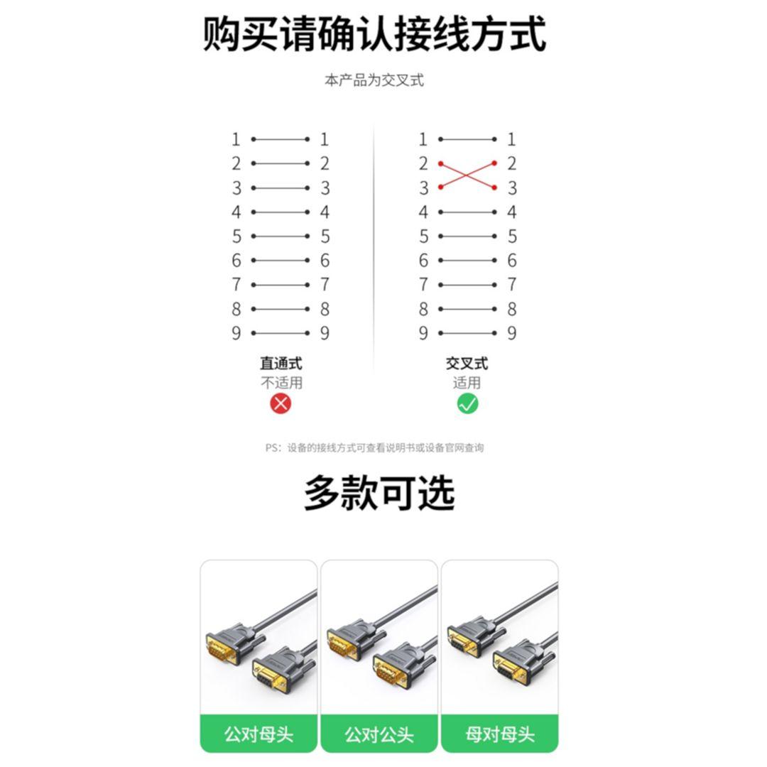 ✨Ugreen UG60308DB102TK 1.5M 30AWG Màu Xám Cáp tín hiệu bấm chéo 2 đầu RS232 DB9 dương chuẩn cáp crossover thích hợp cho máy mã vạch máy công cụ kỹ thuật số - HÀNG CHÍNH HÃNG