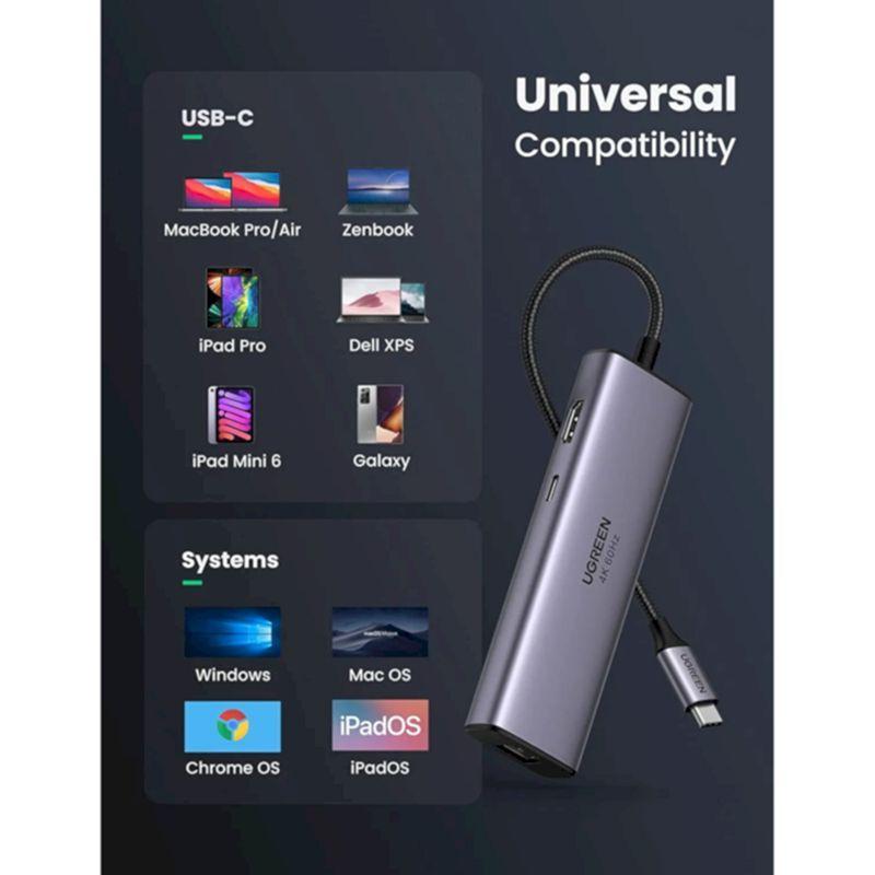 ✨Ugreen UG60515CM512TK 4K 60Hz Giga Lan 2xUsb3.0 + hdmi + card reader + PD bộ hub chuyển từ usb type c - HÀNG CHÍNH HÃNG
