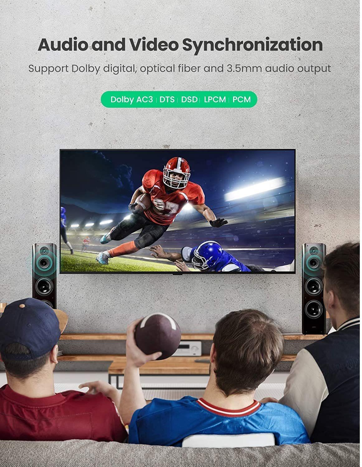 The HDMI switch splitter that supports video resolution up to 3840x2160@60Hz, 2560x1440, 1920x1080 with high dynamic range HDR technology, offers a visual feast with vivid color and every detail for you;
