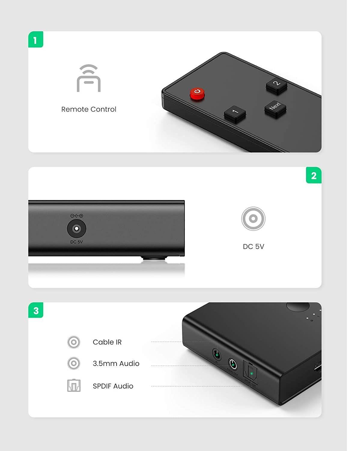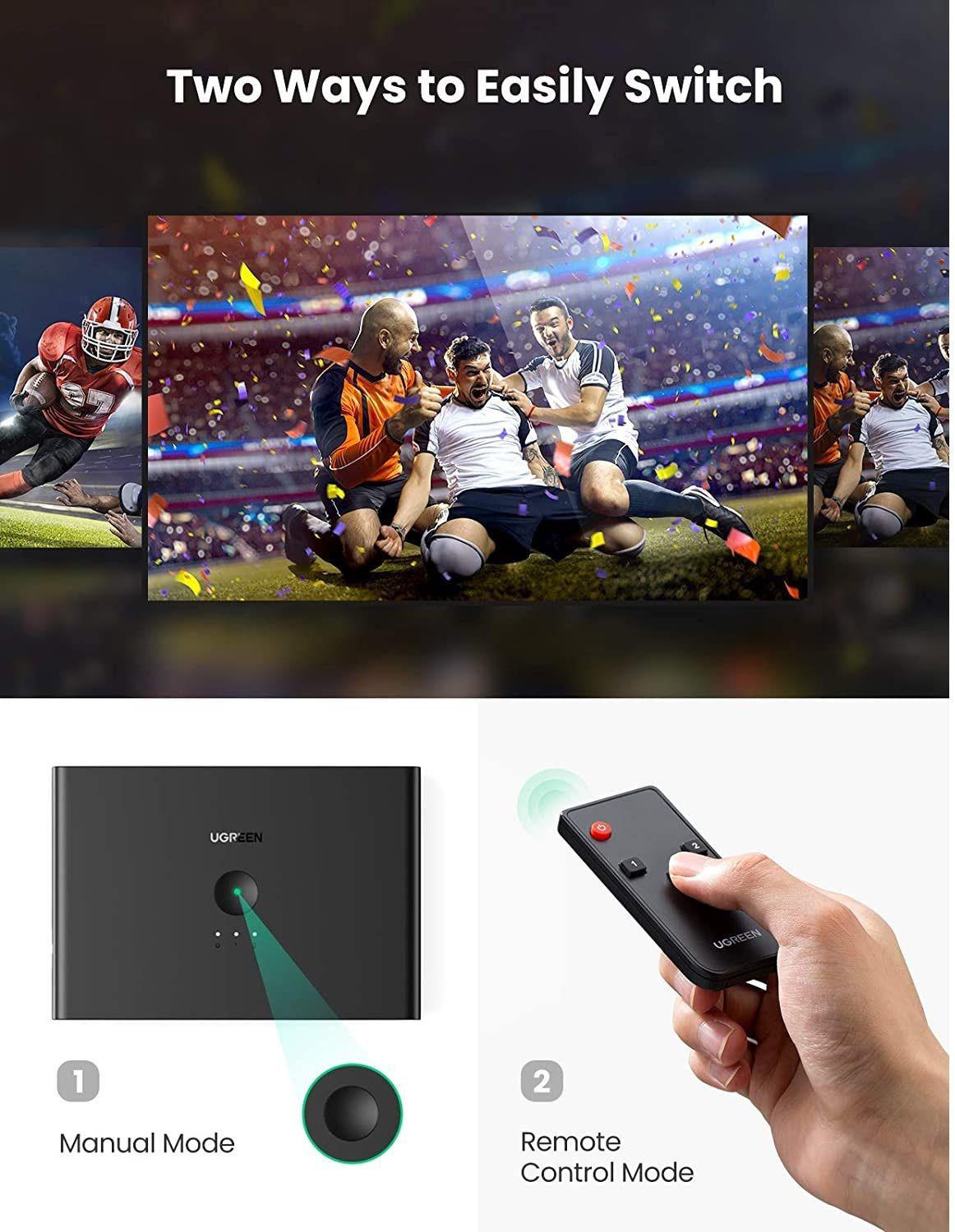 1. This UGREEN 2 IN 2 OUT HDMI Signal switch box offers easy way for you to connect 2 different devices such as PS5, PS4, PC and laptop with two monitors for video output, saves