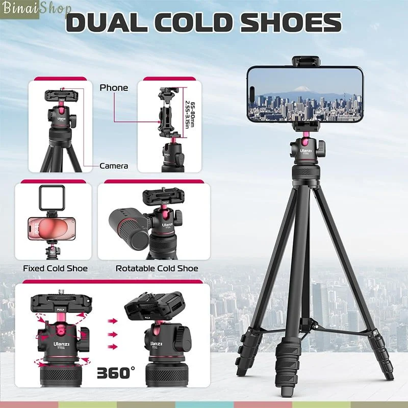 Mua tại Tiktok- Ulanzi TT51 là chân đế di động có khả năng chịu tải lớn 1,3kg, phù hợp để sử dụng với máy ảnh, điện thoại. Thiết kế thông minh tích hợp kẹp điện thoại với ren tiêu