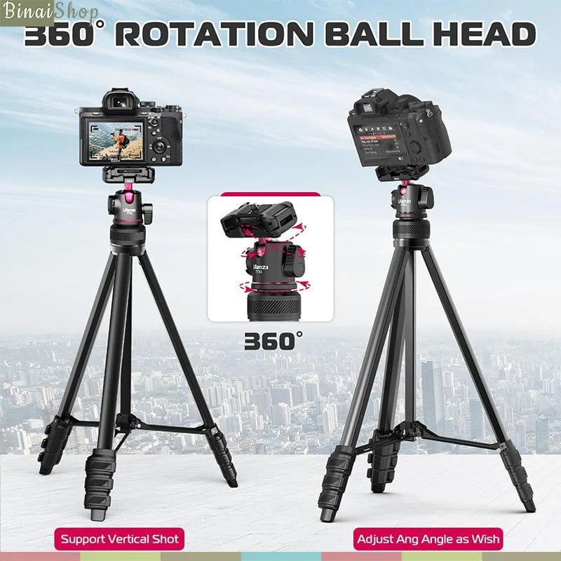 - Ballhead có thể tháo rời và xoay 360 độ đáp ứng nhiều nhu cầu góc độ khác nhau.