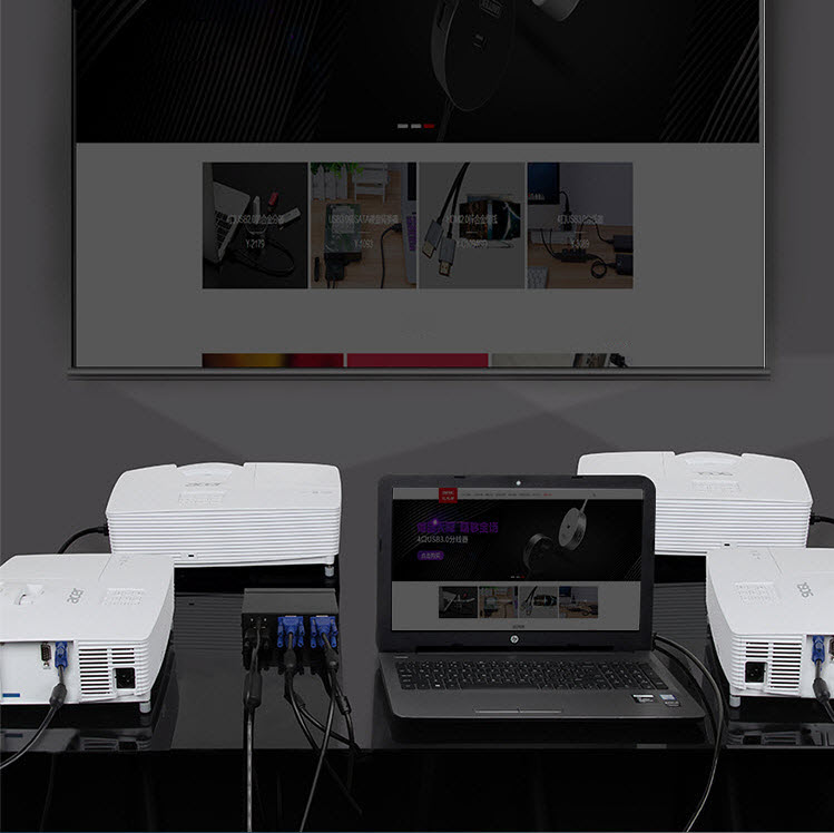1. Input: HDMI*2, USB 2.0 Type-B*2, Mini USB*1 2. Output: HDMI*1, USB 2.0 Type A*4 3. HDMI Version: 2.0 (backward compatible) 4. Maximum resolution: 4K*2K/60Hz (2K and 1080P compatible) 5. Supported operating systems: Windows; Mac