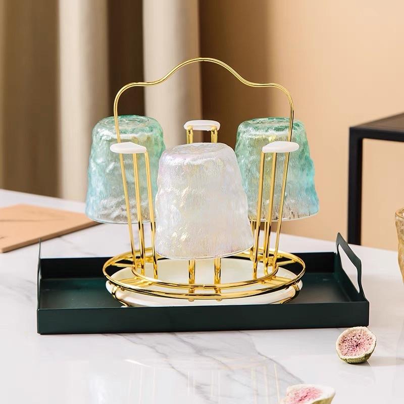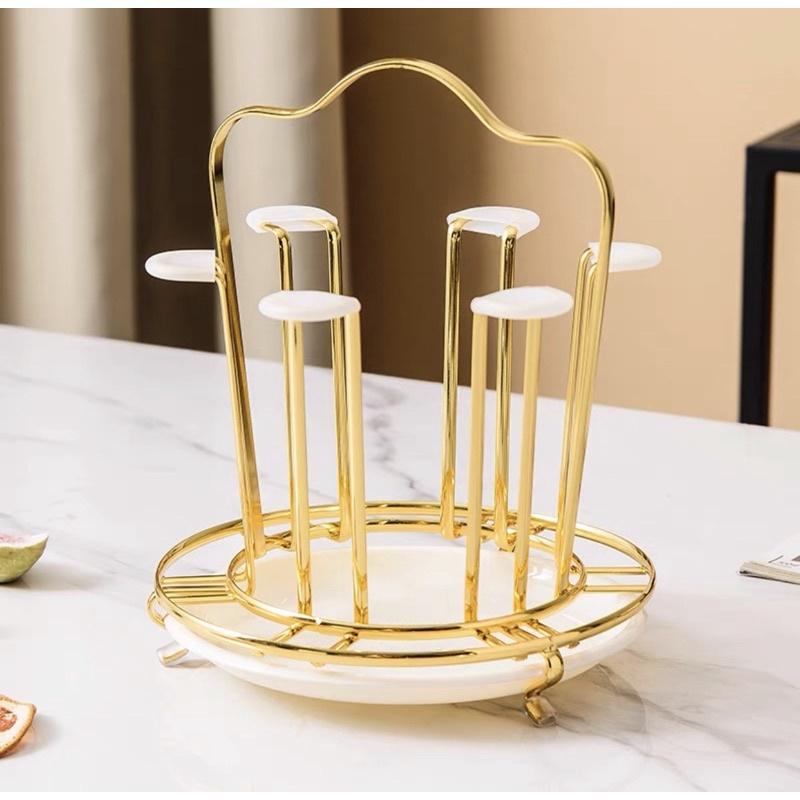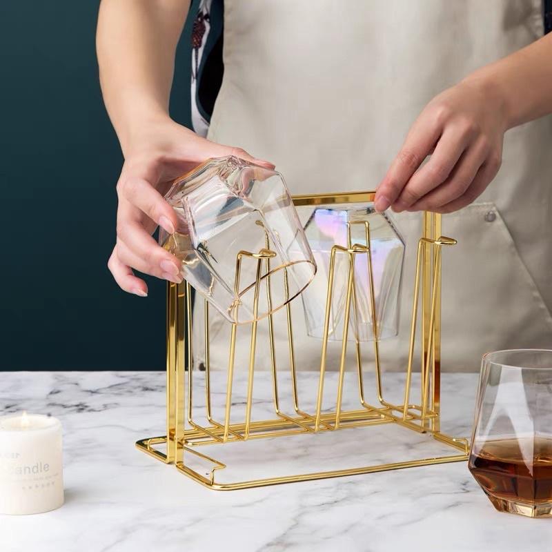 Giá úp ly, kệ úp cốc, chất liệu hợp kim mạ vàng sang trọng, Kèm khay hứng nước