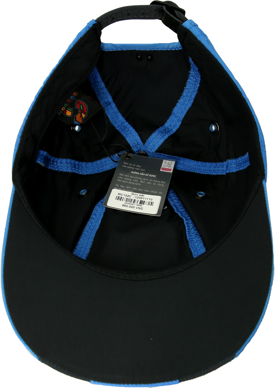 - Sử dụng kẹp phơi vào đai bên trong nón (vị trí giữa lưỡi trai), sao cho lưỡi nón hướng phía trên và dây đuôi hướng phía dưới.