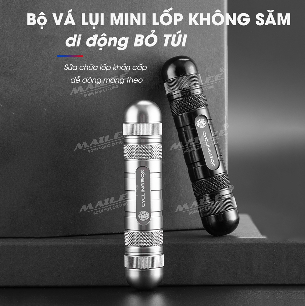 Vá Lụi Mini cho lốp xe không săm cho xe máy bỏ túi CYCLING BOX 9904 chất liệu nhôm nguyên khối, chắc chắn, chiều dài chỉ 9.6cm (tặng kèm thêm 5 sợi vá) - Mai