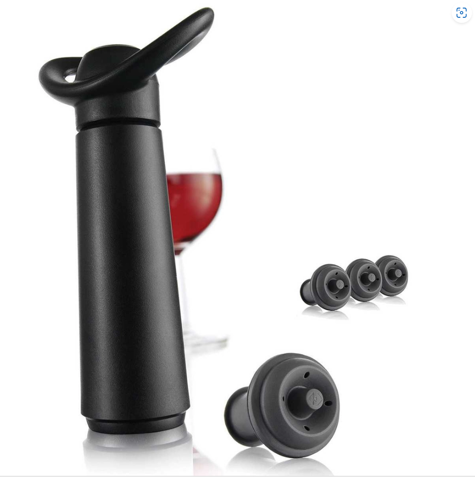 - Đậy chai rượu đã khui bằng nút chai Vacu Vin và dùng dụng cụ hút chân không đi kèm để hút không khí ra.