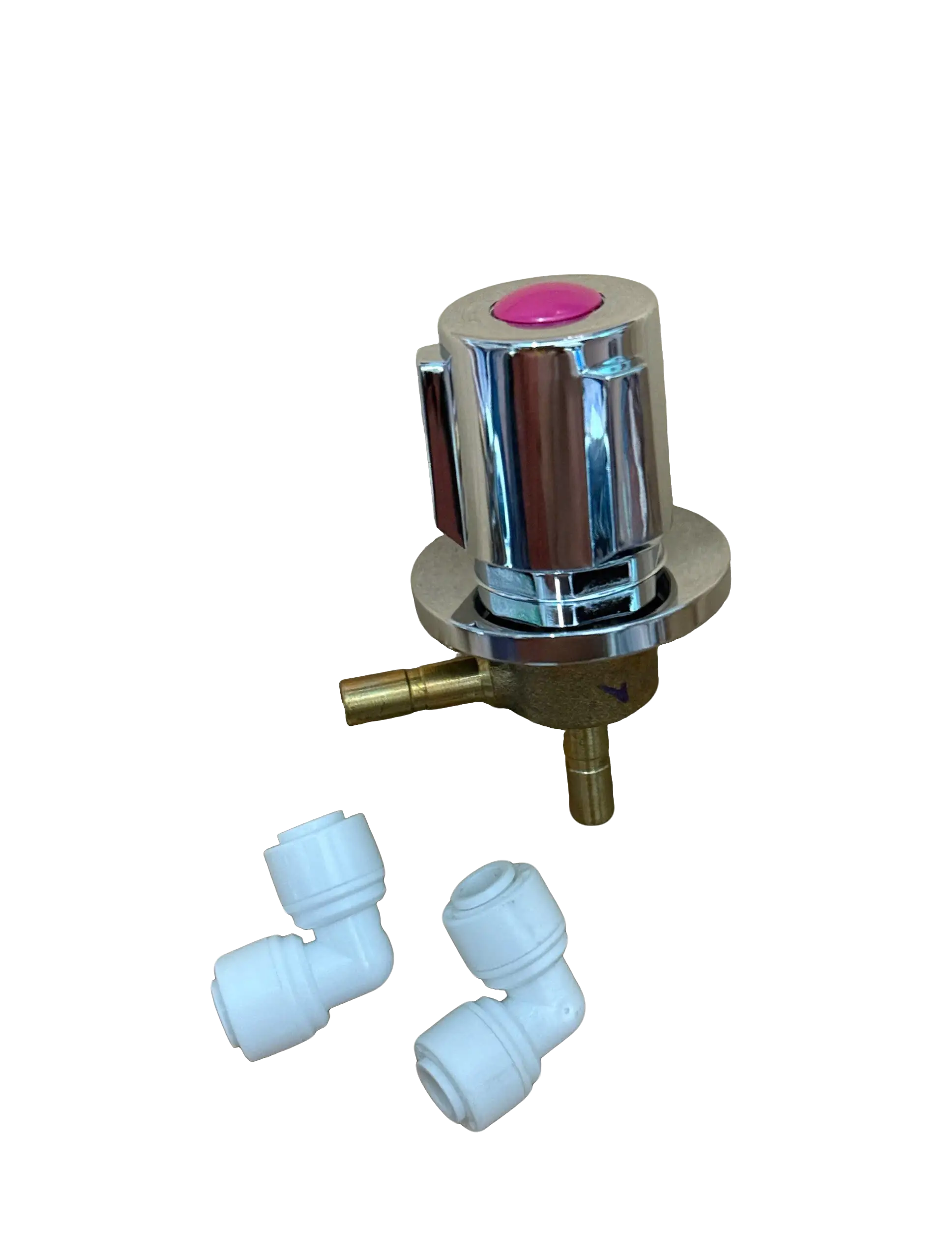 - Sản phẩm: Khóa van máy lọc nước nóng lạnh, khóa dạng núm tròn xoay, lật có nút màu xanh đỏ phân biệt nước nóng và lạnh. Thông Số Kỹ Thuật