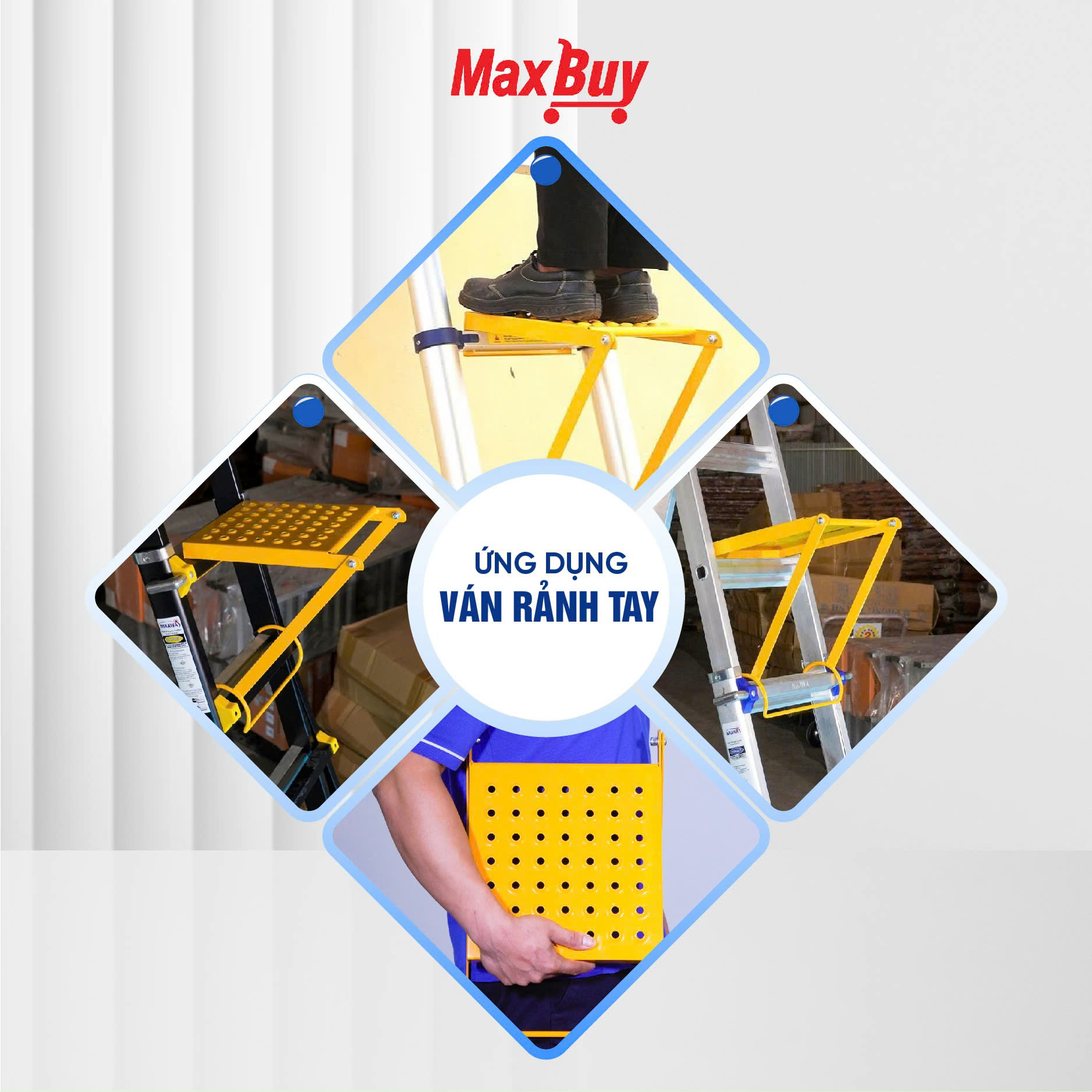Ván thang rảnh tay Nikawa Bậc thang cơ động đa năng, gấp/rút linh hoạt, dùng được cho mọi loại thang như thang gấp, thang rút, thang chữ A, thang đa năng….