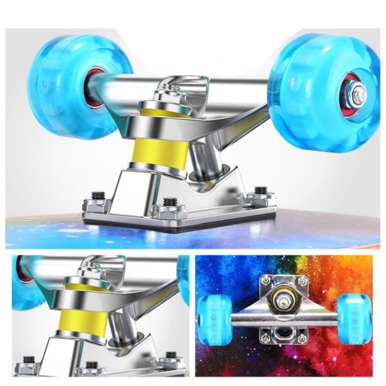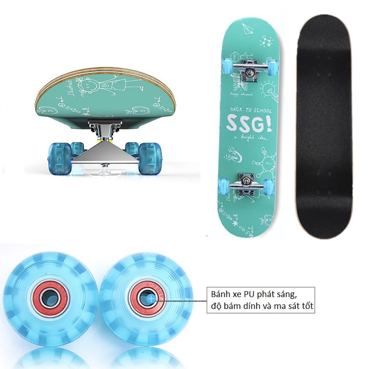 - Kết cấu: Mặt ván kết cấu nhám + Bánh cao su có đèn led phát sáng khi chạy.