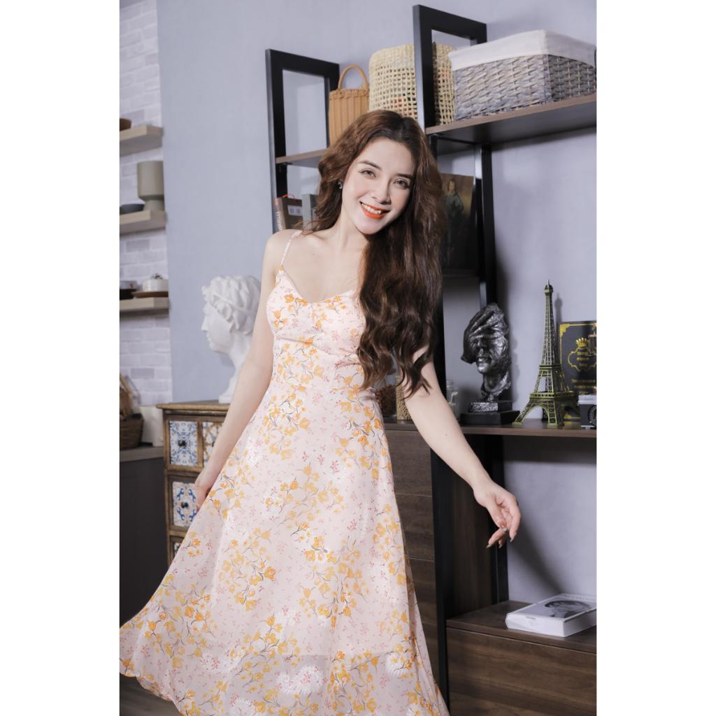 ✨Váy Hoa Voan Mềm Màu Vàng Cao Cấp 23V050 Pi Style