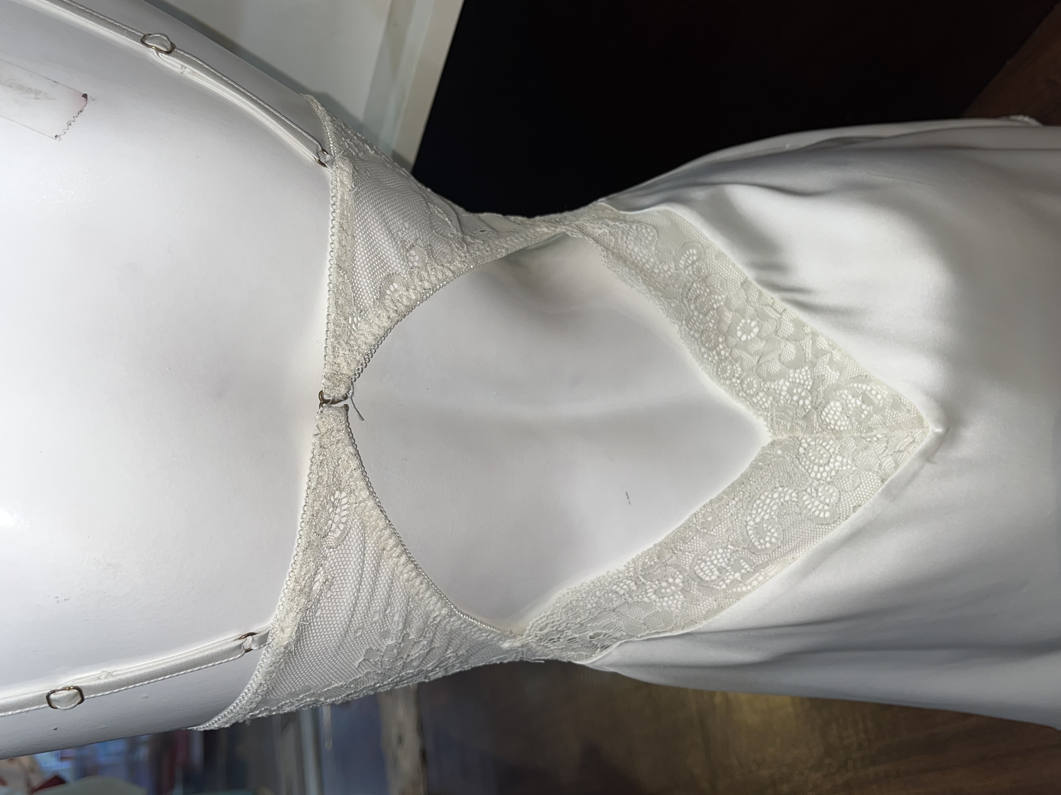 Thương hiệu: Sanny House Tên sản phẩm: Váy ngủ Chất liệu: lụa cao cấp mềm mịn, co giãn, thấm hút tốt Kiểu dáng: gợi cảm, trẻ trung, hiện đại Màu: trắng Size: dưới 56kg