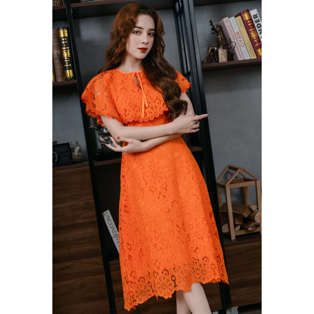 ✨Váy Ren Bèo Cổ Màu Cam 23V005 Cao Cấp Pi Style