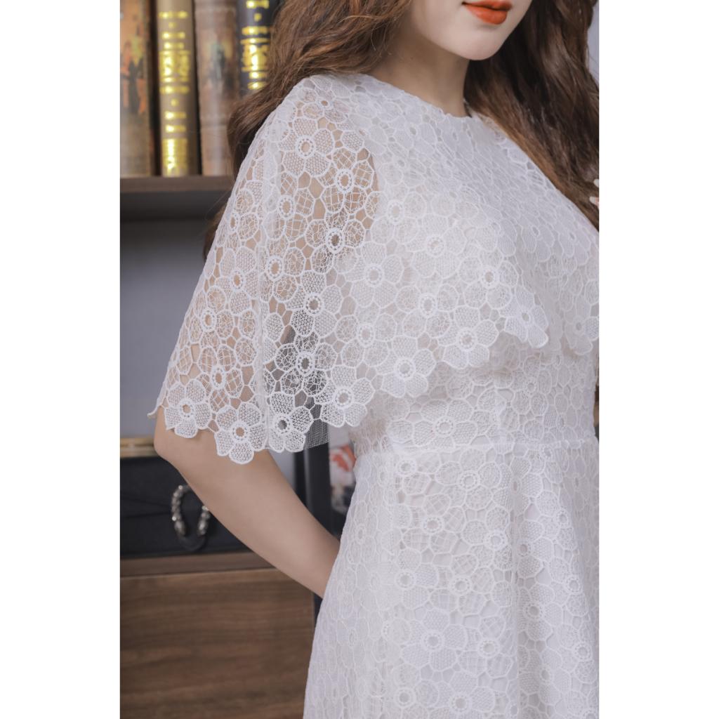 Pi - Váy ren màu trắng bèo cổ 23V003