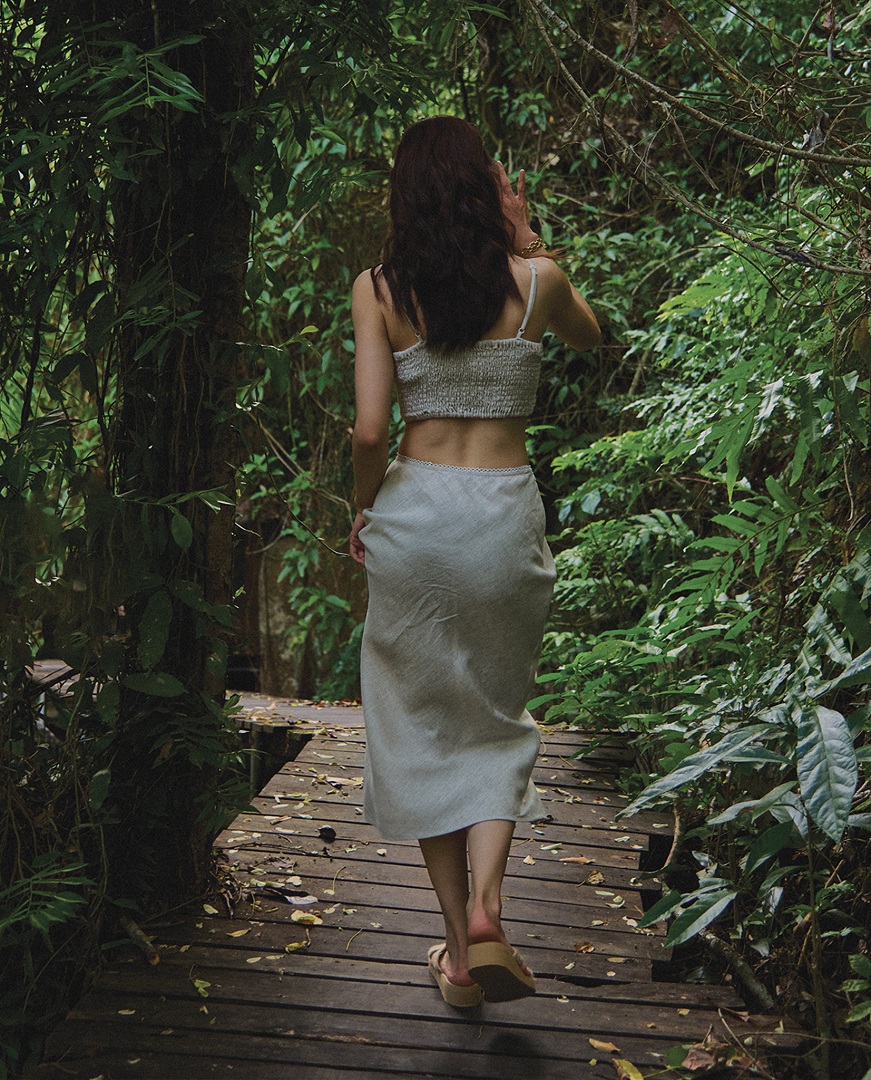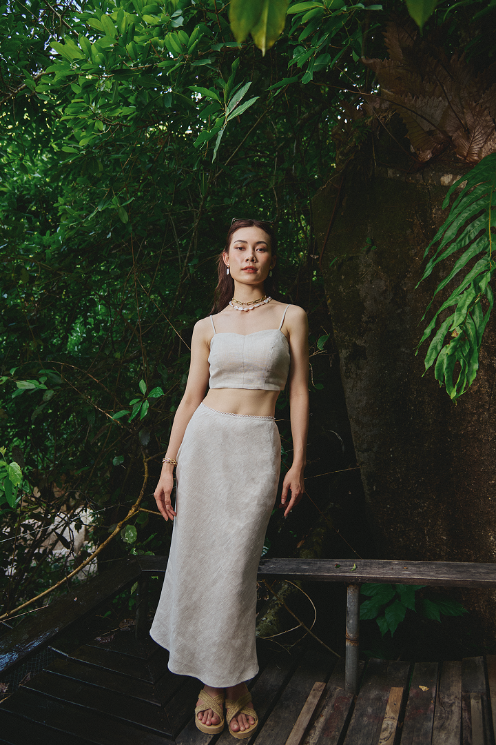 Chất liệu: Linen 180gsm Nghệ nhân cắt may: Thanh Thuỷ, Bích Hoà Cắt may thủ công tinh tế tại Hity Atelier, Nha Trang, Việt Nam Dù ở tuổi nào, phong cách thời trang thanh lịch, tối giản, phù hợp với khí hậu nơi sinh sống hoặc dừng chân vẫn luôn là ưu tiên với những người từng trải. Một chiếc áo crop top hai dây và chân váy midi đồng bộ trên nền thức vải linen chắc chắn sẽ mang đến vẻ ngoài nhẹ nhàng, phóng khoáng cho bạn trong những ngày hè.  Được thực hiện trên nền chất liệu linen, chân váy midi Lanh tạo cảm giác thoải mái, thoáng mát và gần gũi với thiên nhiên. Kiểu dáng dài suông, có chút đuôi cá nhẹ nhàng, lưng cao tối giản mà lại cực kỳ tôn dáng, tạo hiệu ứng kéo dài đôi chân và mang lại sự mềm mại, uyển chuyển trong từng bước đi. Chi tiết viền ren ở phần lưng váy tạo điểm nhấn tinh tế. Với màu xám muối tiêu trung tính, bạn dễ dàng phối đồ và phù hợp với nhiều tông da, đồng thời mang lại cảm giác dịu mắt, thanh lịch. Điểm thêm vài phụ kiện tối giản như vòng cổ ngọc trai hoặc hạt đá tự nhiên, vòng tay mảnh, dép đế cói, bạn khoác lên mình phong cách resort wear nhẹ nhàng thanh tao, đề cao sự thoải mái, vẻ đẹp tự nhiên và nét thanh lịch, tinh tế, phù hợp cho những buổi dạo chơi, du lịch biển hoặc những sự kiện ngoài trời không quá trang trọng.      HƯỚNG DẪN SỬ DỤNG Để trang phục của bạn luôn sạch sẽ, mới đẹp và cùng góp phần bảo vệ môi trường giảm thải quần áo cũ, Ms. Hity khuyến khích bạn chăm sóc đúng cách quần áo của mình: Giặt máy ở nhiệt độ tối đa 30ºC, bọc trong túi giặt, vắt ở tốc độ thấp Không sử dụng nước tẩy / thuốc tẩy Phơi khô trên bề mặt phẳng Không sử dụng máy sấy Ủi ở nhiệt độ tối đa 150ºC (chế độ Cotton/ Linen) Ủi bằng bàn ủi hơi nước