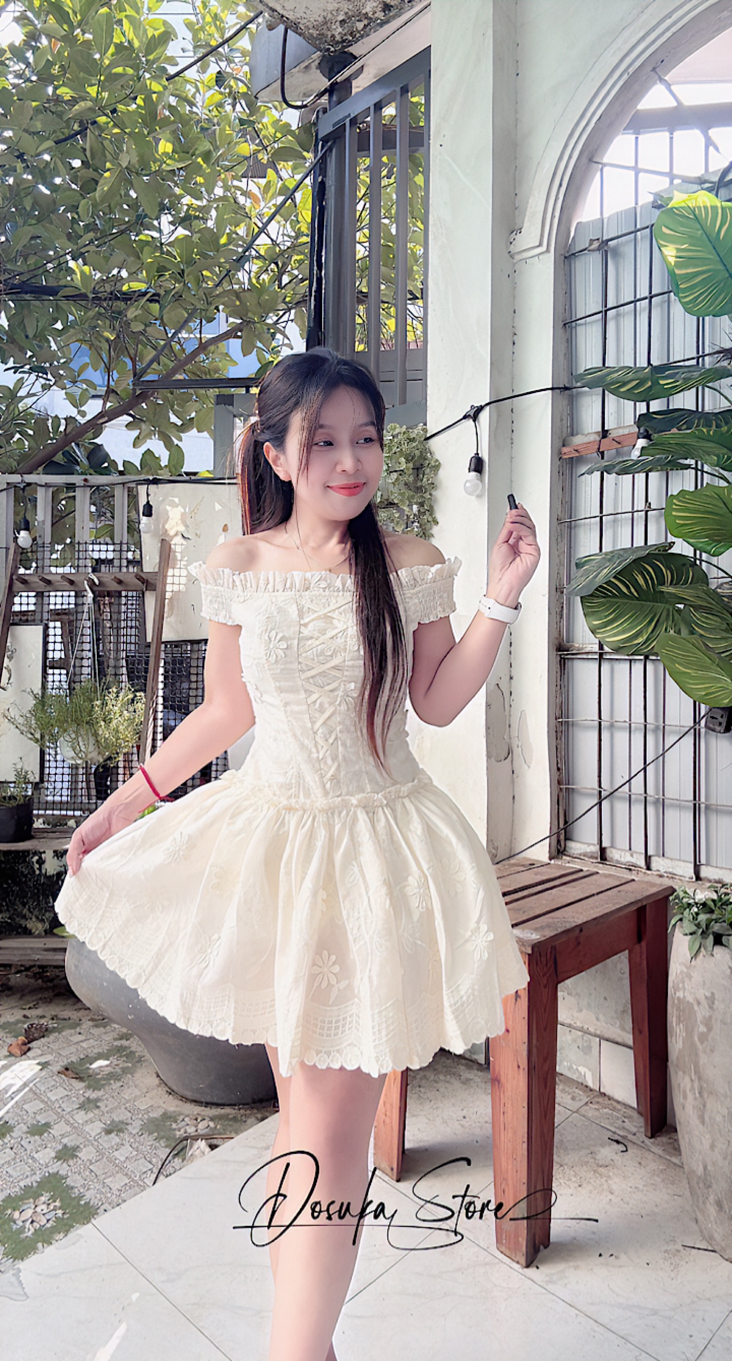 Váy sát nách cổ sen tầng bèo xinh xỉuuuuu váy có kèm quần bảo hộ nên ce vẫn thoải mái nha 2 màu: đen - kem •S/M Sản phẩm này là tài sản cá nhân