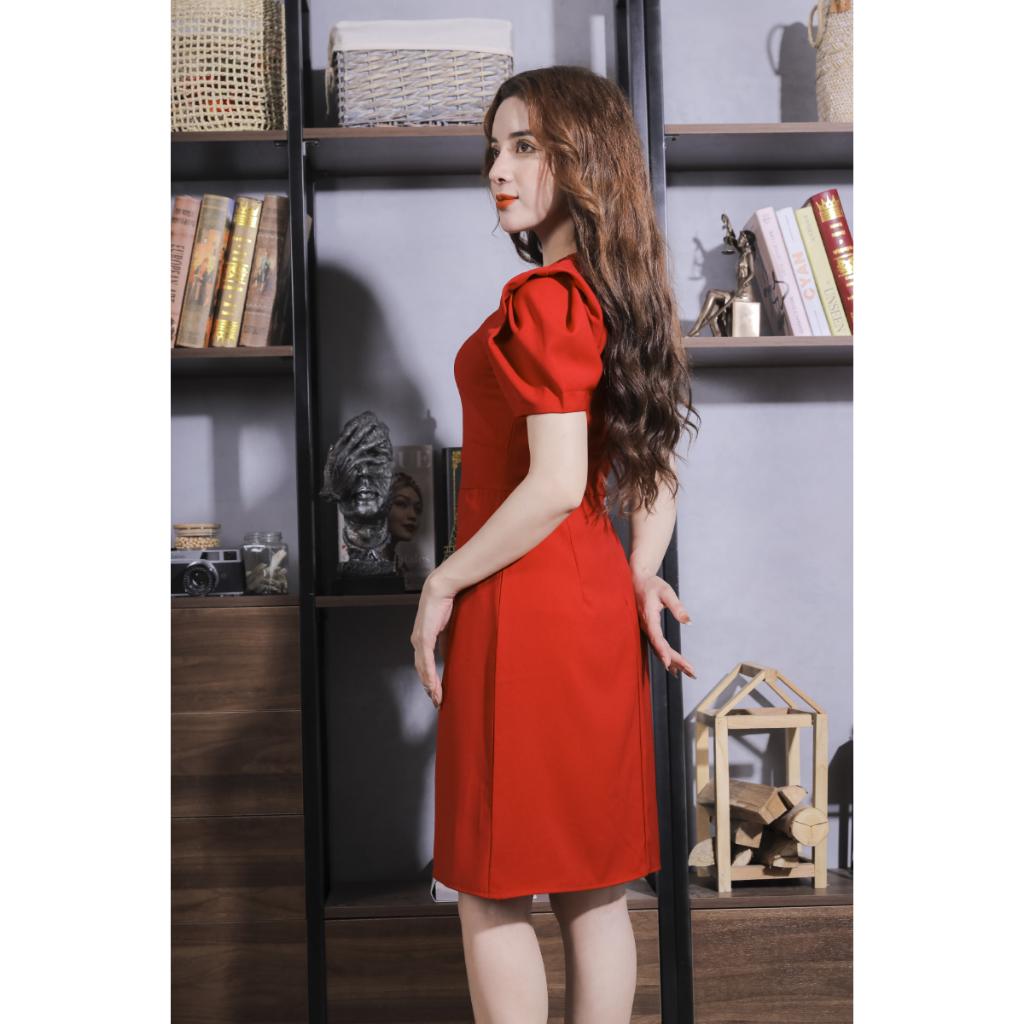 Váy Vải Trơn Cúc Trước Màu Đỏ Pi Home Of Beauty Made With Love 23V059