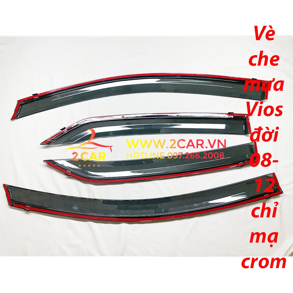 Vè che mưa xe Vios 2008 2009 2010 2011 2012 2013 chất liệu chỉ mạ crom cao cấp Vè che mưa cho Toyota Vios 2008 - 2013 Chỉ Mạ