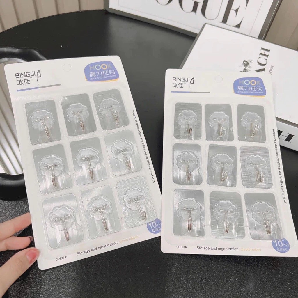 Vỉ 9 móc dán tường chịu lực siêu chắc, móc dán tường đa năng chịu nặng tốt