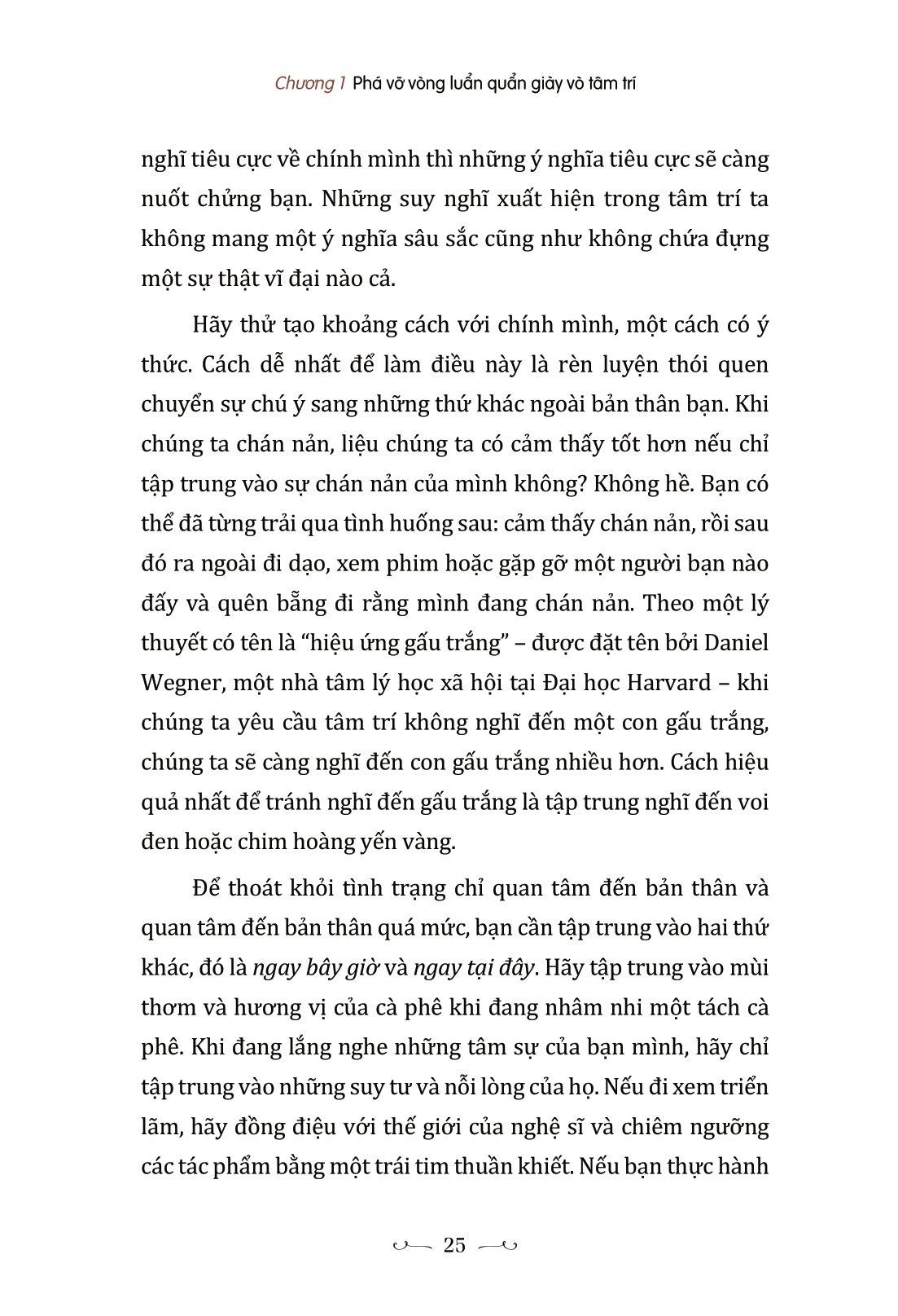 Chương 1 sẽ đề cập đến cách phá vỡ chuỗi suy nghĩ đang ám ảnh bạn, đồng thời giới thiệu một góc nhìn mới để bạn có thể ngừng suy nghĩ quá nhiều về bản thân, từ bỏ thói quen sống mãi trong những tổn thương quá khứ và không còn lo lắng quá nhiều về tương lai chưa đến.