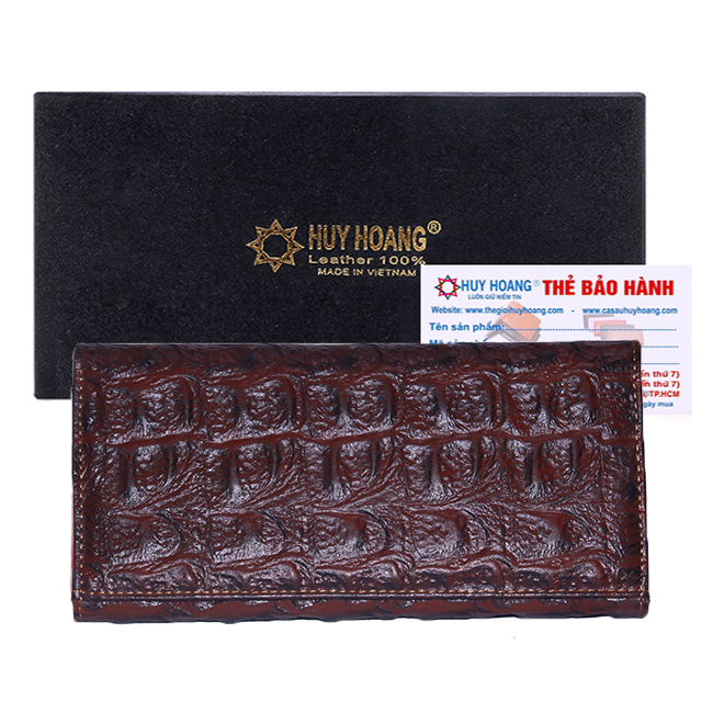 Ví/Bóp nữ da bò Huy Hoàng vân cá sấu lớn 3 gấp màu nâu đỏ 3154