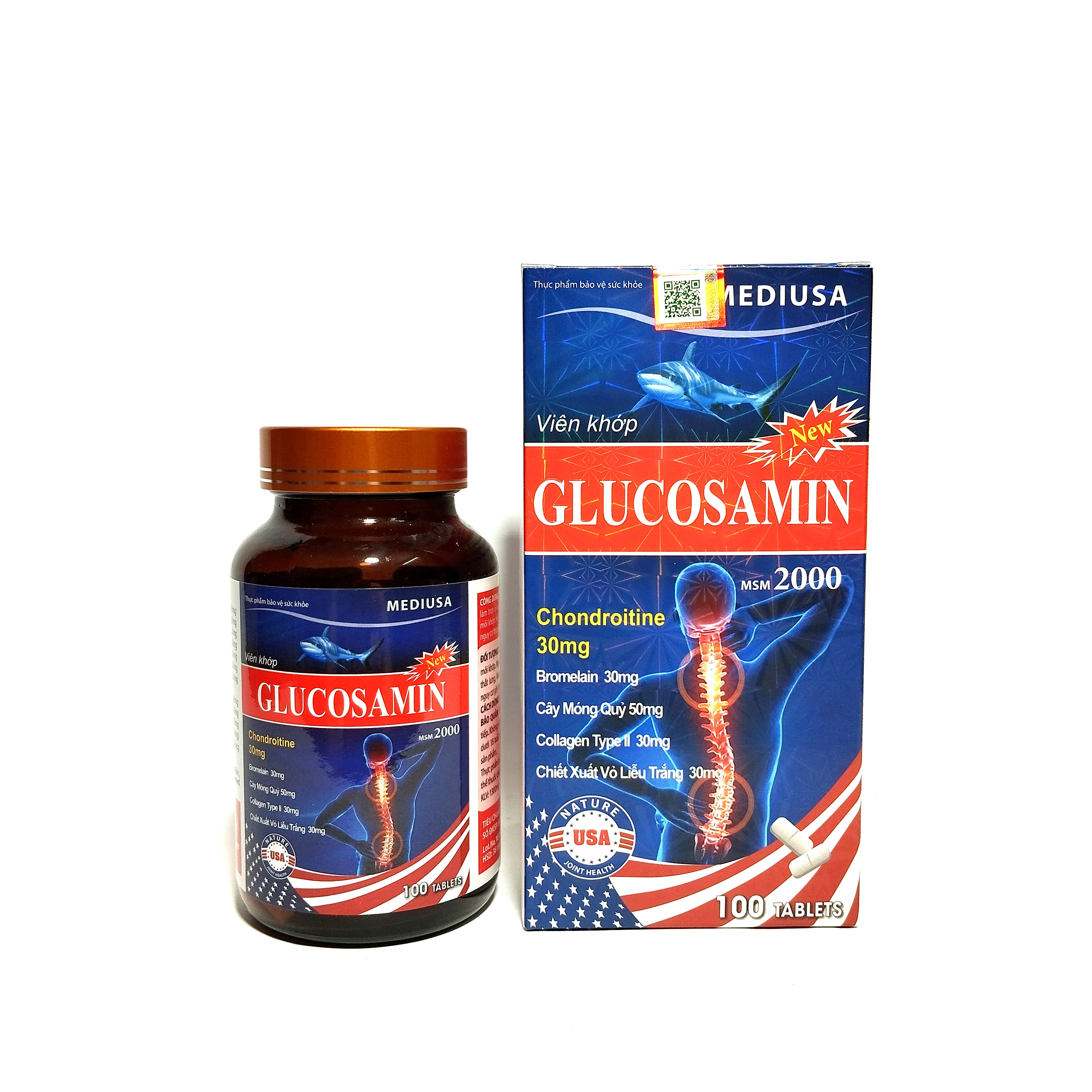 Thông tin chung: Thành phần: - Glucosamin sulfat 2KCl: 750mg - MSM: 120mg - Chondroitin sulfat natri 90%: 50mg - Collagen type 2: 30mg - Bột Sụn vi cá mập: 25mg - Bromelain 2400 GDU/g: