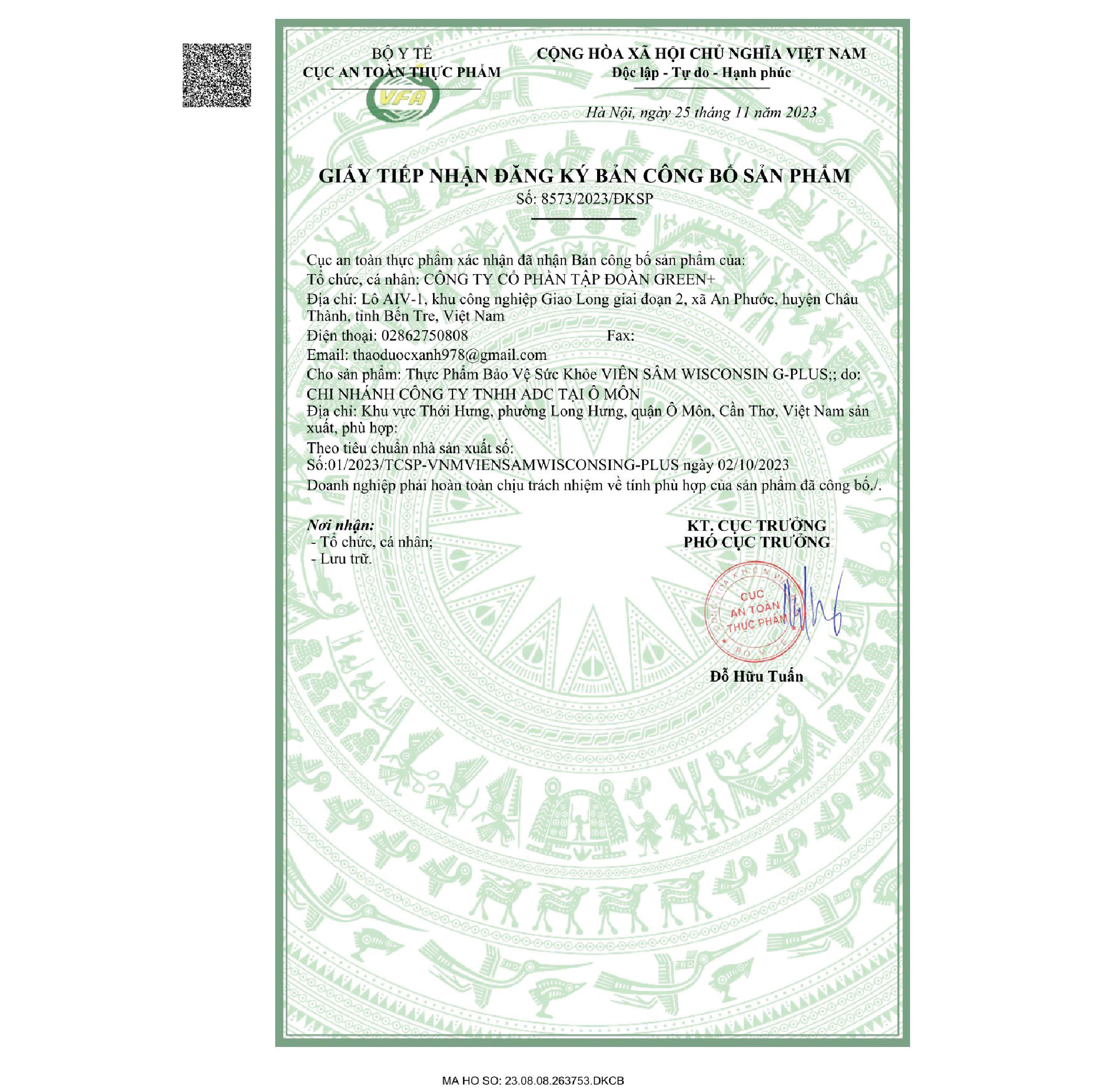 THÀNH PHẦN - 100% nhân sâm Wisconsin Hoa Kỳ. CÔNG DỤNG - Bồi bổ nguyên khí, hỗ trợ tăng cường sinh lực. - Hỗ trợ cho tinh thần tỉnh táo, minh mẫn. - Hỗ trợ